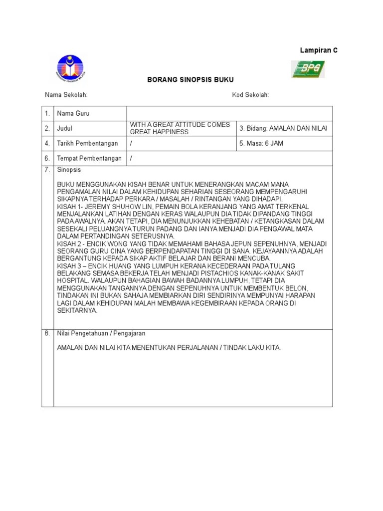 Doc lampiran c contoh borang sinopsis buku nurul aida academia edu.